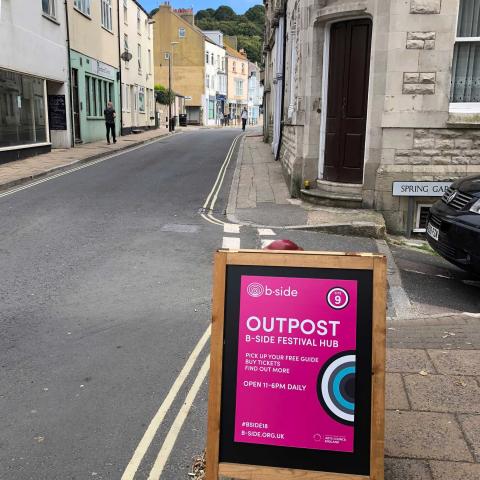 b-side present contemporary art in an accessible way. Working with artists and communities, they use unusual places for installations, performances and much more. They are committed to bringing art outside, allowing artists to create in response to places that communities can access and enjoy.